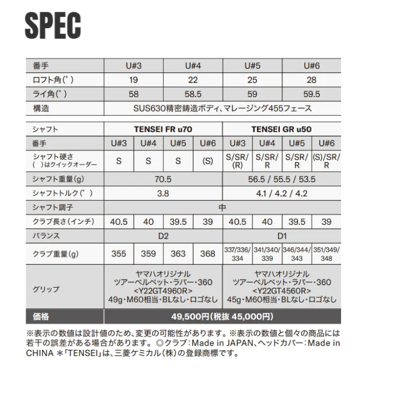 装着シャフト:TENSEI FR u70(S) ヘッドカバー付属