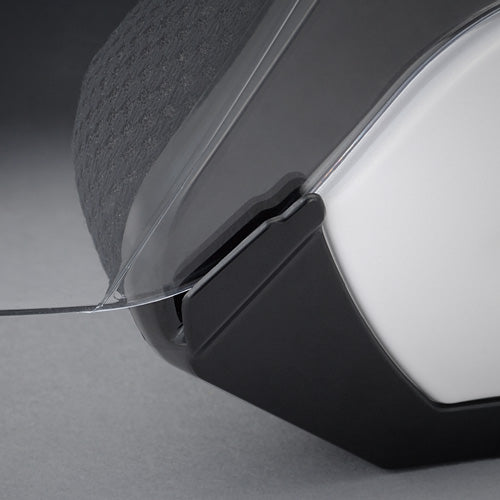 シールド内側に特殊なコーティングを施すことで曇りにくいシールドをYAMAHAヘルメットで初めて採用しました。広範囲に渡ってシールドに特殊コーティングを施すことで良好な視界を保ち快適なライディング環境を実現します。