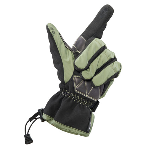 甲側に防水性・透湿性に優れた生地を使用し、さらに透湿防水フィルムHIPORAを内蔵した、透湿防水・グリップウォーマー対応のウィンターロンググローブ