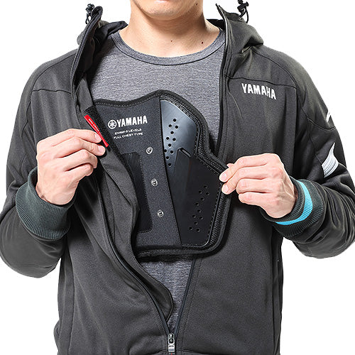 お手持ちのライディングジャケットの保護機能をより高める、CE規格LEVEL2の一体型胸部プロテクター